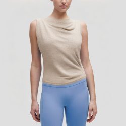 Asymmetric neckline design: The neckline adopts an asymmetric design, breaking the conventional symmetrical aesthetics, with smooth and natural lines, showing a unique fashion attitude. The asymmetric structural design enhances the sense of shape, making the whole top more modern and eye-catching.
