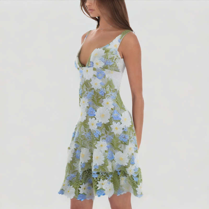 Exquisite flower embroidery: The skirt is embellished with exquisite flower embroidery patterns, with delicate workmanship and rich layers, which enhances the overall texture and design sense, exuding a romantic and elegant feminine charm.