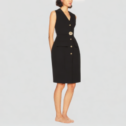 Single-breasted decoration: The skirt body is equipped with a single row of buttons, breaking the single sense of black solid color design, enhancing the level and visual focus, and showing the design ingenuity in the details.