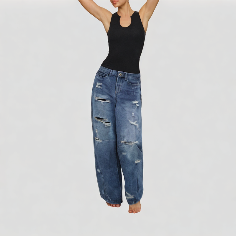 Ripped design: This pair of jeans uses partial ripped elements to create a casual street feel, breaking the dullness of conventional jeans and adding a sense of uninhibitedness and straightforwardness. Whether it is daily outings or trendy wear, it is an eye-catching highlight. High-waisted cut: The high-waisted design is used to lift the waistline, visually lengthen the leg lines, and…