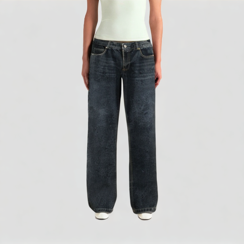 Love Pocket Design: The back pocket is specially designed in the shape of a heart, which is unique and cute, injecting a touch of girlishness into the basic jeans. Whether walking or turning, it is full of eye-catching charm, showing a sweet and cool style. Cat whisker processing: The pants body adopts cat whisker brushing technology to naturally create a…