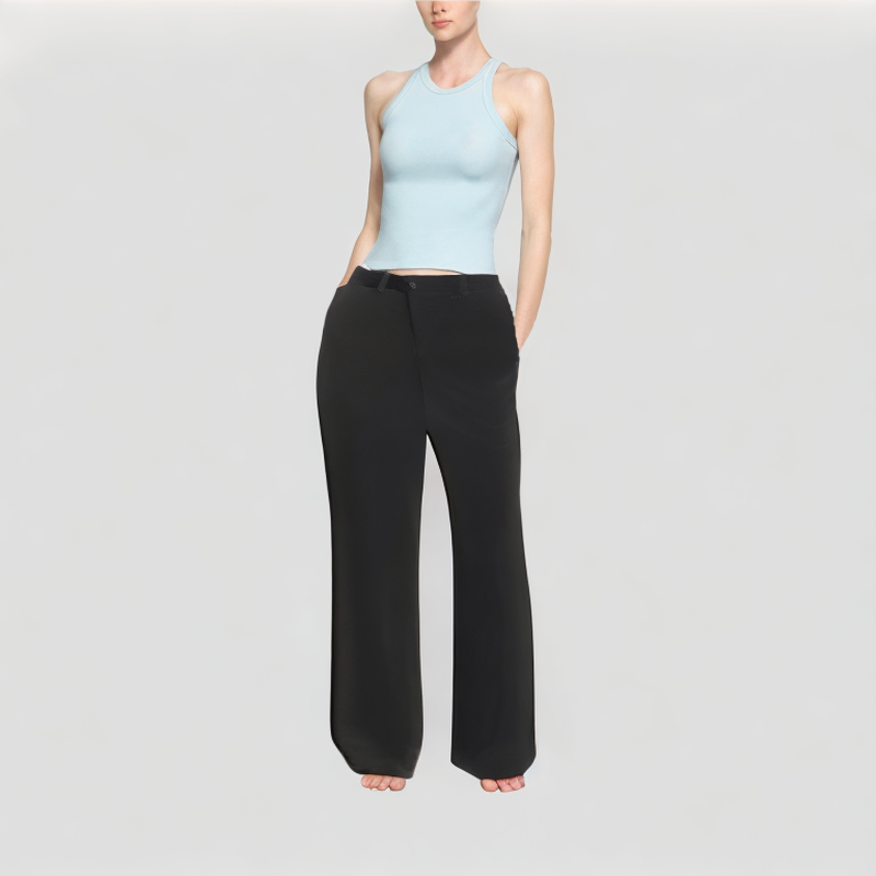 High-waisted tailoring: The high-waisted design cleverly raises the waistline position, visually lengthens the leg proportion, shapes an upright posture, and shows a capable temperament. Tapered trousers: The trousers are naturally gathered from wide to narrow, the loose thigh design takes into account comfort, and the calves are moderately tightened, effectively covering the leg lines and modifying the leg shape without…