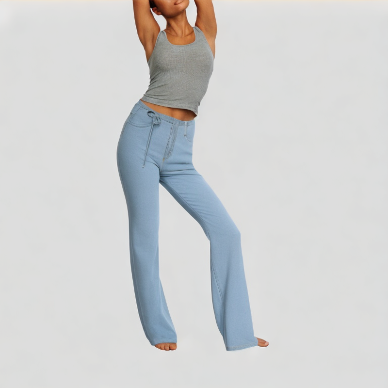 Bow tie design: The waistband is designed with an adjustable bow tie, which is not only practical and convenient, but also adds a sweet and lively visual focus to the overall shape, breaking the neutral impression of traditional jeans, injecting a gentle girlish atmosphere, and refreshing and age-reducing. Semi-elastic waistband: The waist adopts the design of elasticity on the back…