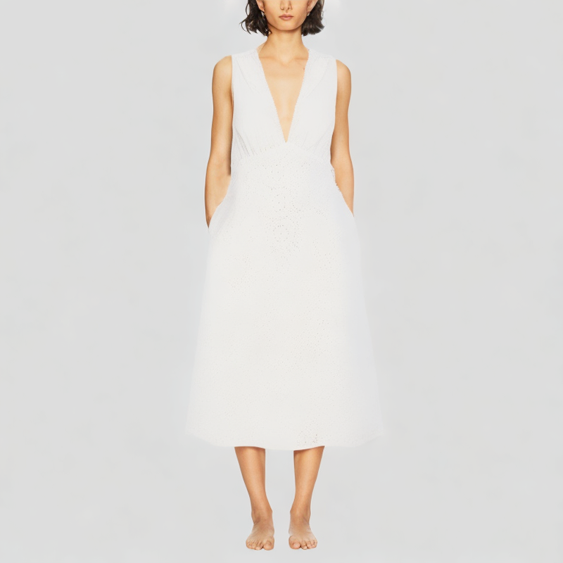 V-neck suspender design: The simple V-neck with thin suspender cut naturally lengthens the neck curve, showing a refreshing and neat upper body proportion, and creating a light summer shape. Exquisite flower embroidery: The skirt is embellished with exquisite flower embroidery patterns, with delicate workmanship and rich layers, which enhances the overall texture and design sense, exuding a romantic and elegant…