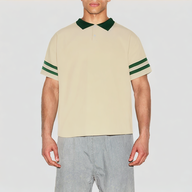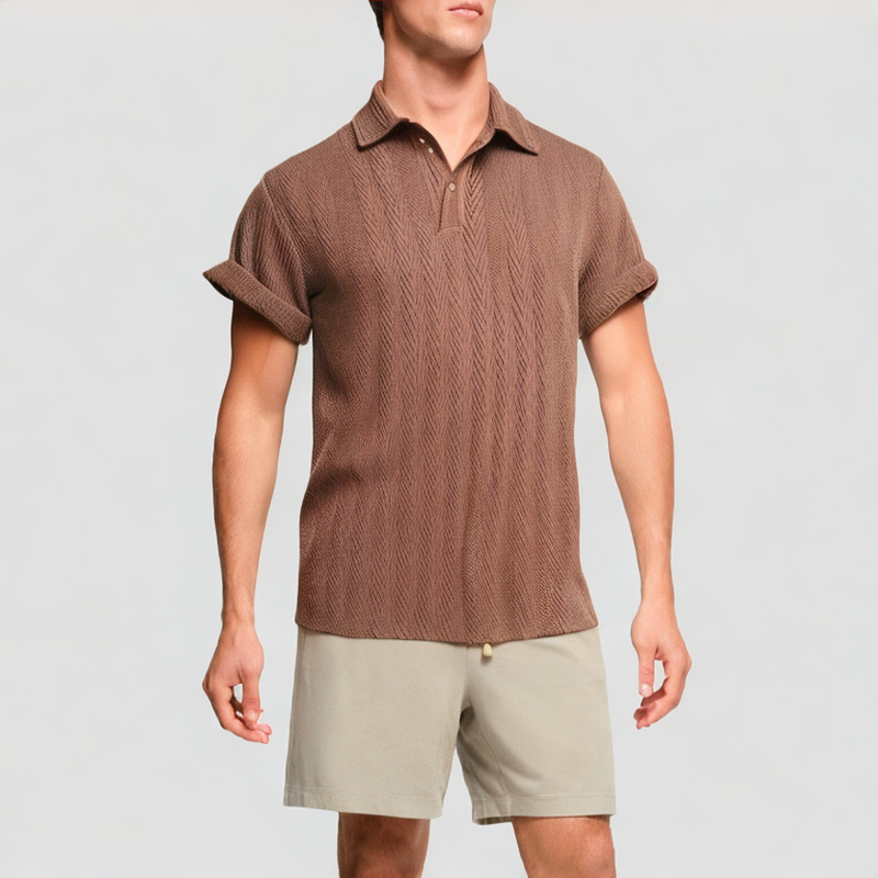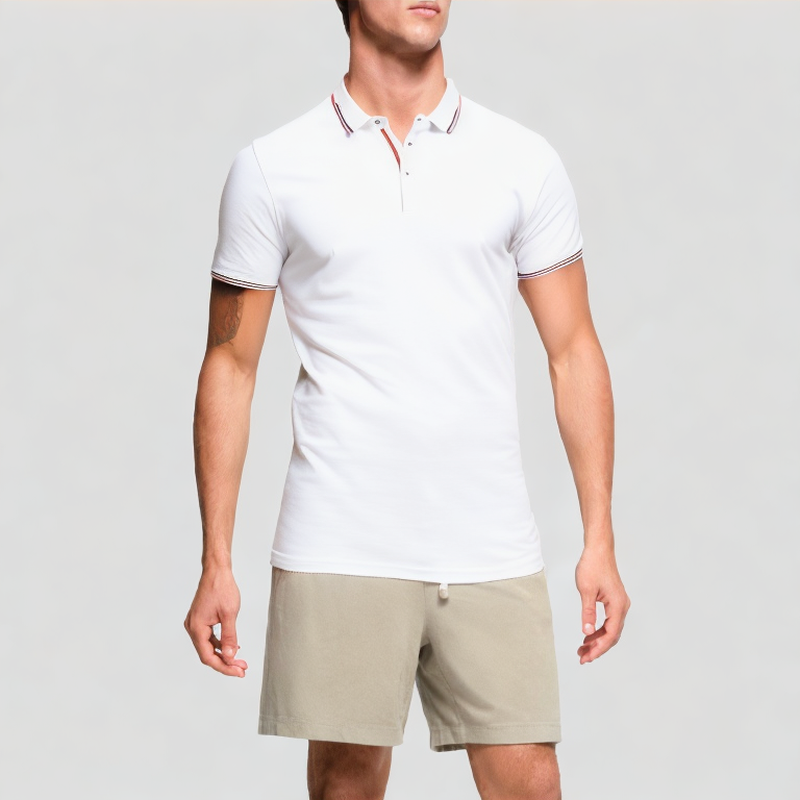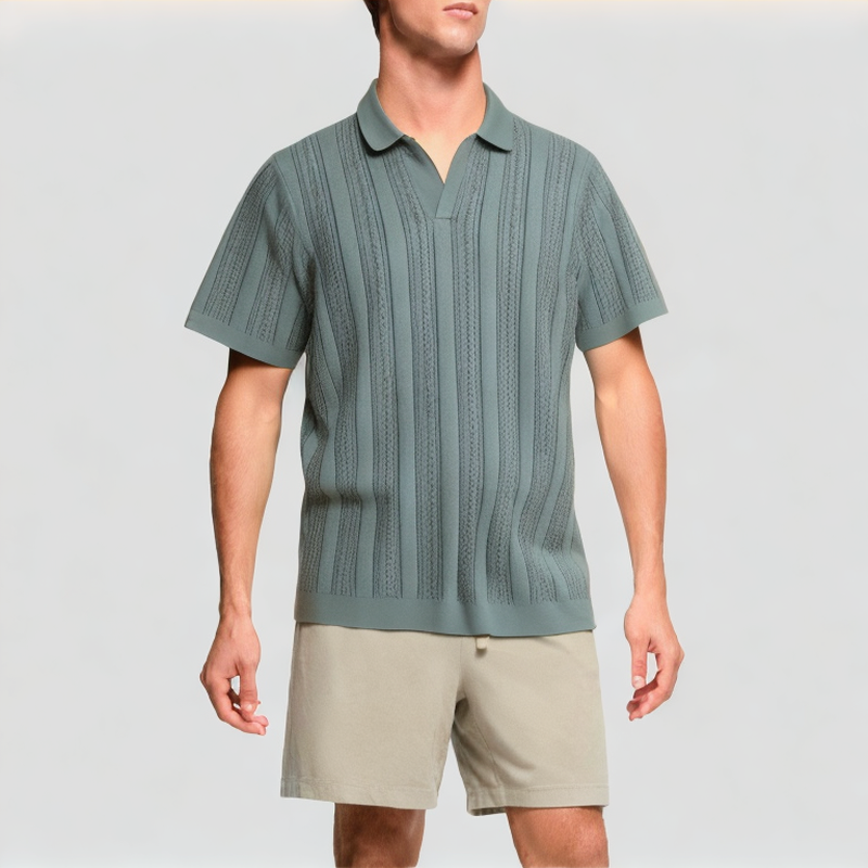 Lightweight blended yarn knitted fabric: woven from selected blended yarns, soft to the touch, breathable and light, with both elasticity and structure. The surface has a natural texture, presenting a delicate matte luster, creating a low-key and elegant visual effect. Classic Polo collar design: Polo lapel with button placket continues the traditional gentleman elements and brings a neat and capable…