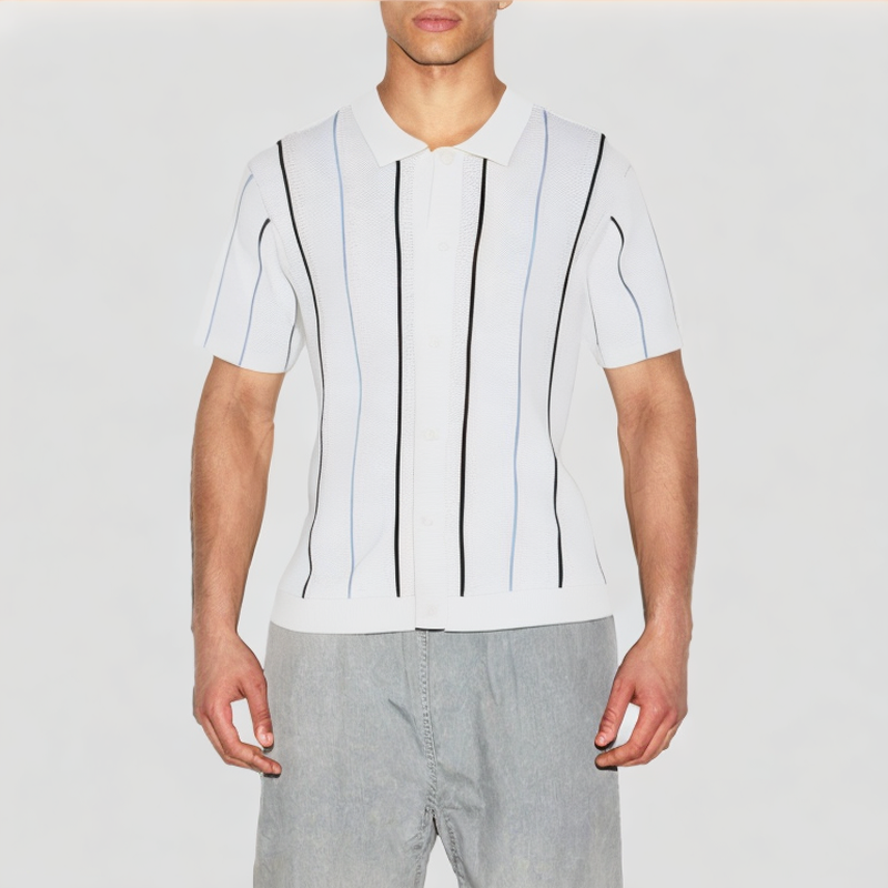 Comfortable pure cotton knitted fabric: Selected 100% pure cotton knitted material, soft and skin-friendly, good breathability, elastic, comfortable and fitting wearing experience, suitable for multi-season wear. Classic lapel and single-breasted design: With traditional lapel and single-breasted placket, it shows a simple and capable outline, enhances the overall texture, and combines formal and casual styles. Contrasting vertical stripe pattern: The stripes…