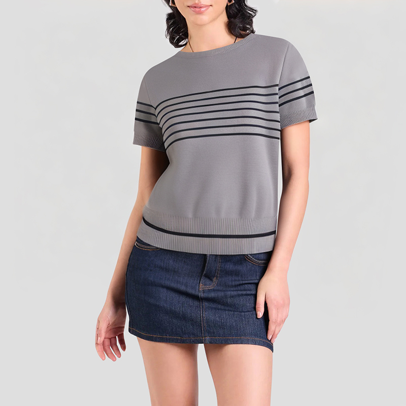 Contrasting stripe design: The overall color is gray, with black contrasting stripes, creating a neat and capable visual effect. The stripes are arranged horizontally, full of rhythm and sportiness, and a touch of street fashion elements are integrated into the simple style. The classic color matching is timeless and easy to match with various bottoms, making daily wear more dynamic…