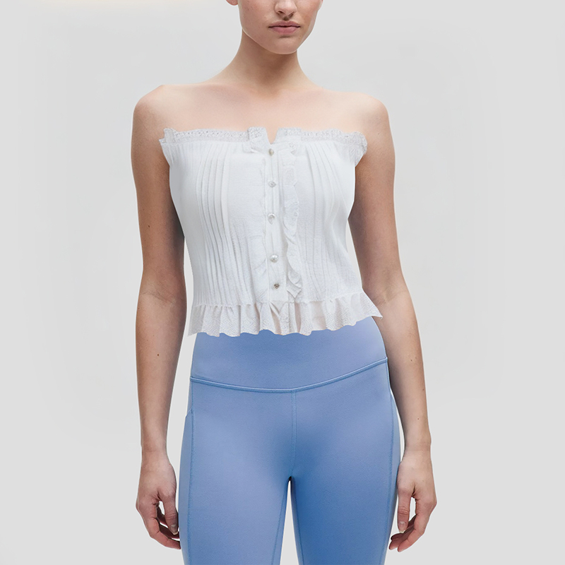 Double-layer structure design: The whole top adopts a double-layer fabric design, with the inner and outer layers staggered, enhancing the overall three-dimensional and elegant feeling. The light material drapes naturally during movement, creating a smart and smooth visual effect, highlighting the elegant temperament and high-end feeling. Asymmetric neckline design: The neckline adopts an asymmetric design, breaking the conventional symmetrical aesthetics,…