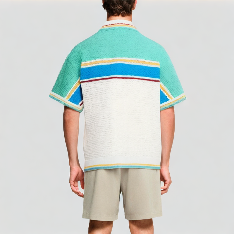 Applicable to a wide range of occasions: This contrasting knitted mesh short-sleeved shirt is suitable for a variety of occasions: whether it is daily commuting, gatherings with friends, weekend outings, or holiday trips and beach vacations, it can easily create a refreshing and natural summer look without losing its exquisite texture.